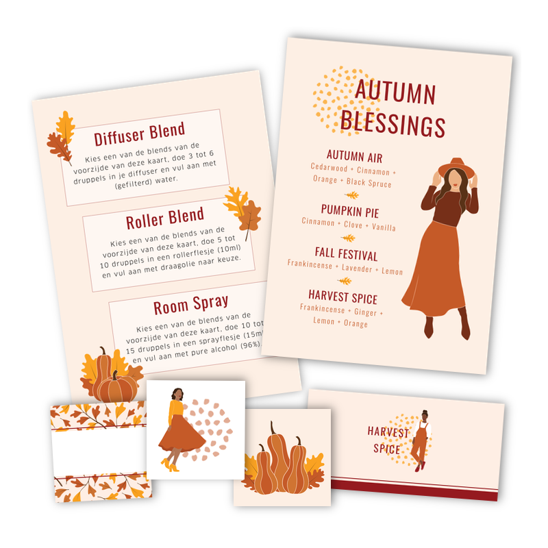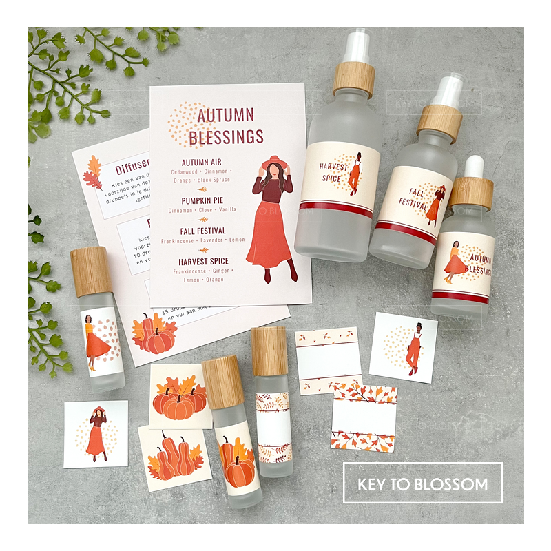 Op de receptenkaart vind je vier verschillende recepten en een uitleg hoe je deze kunt kunt toepassen als diffuser blend, roller blend en/of room spray. Maak je flesje helemaal af met de bijpassende stickers.