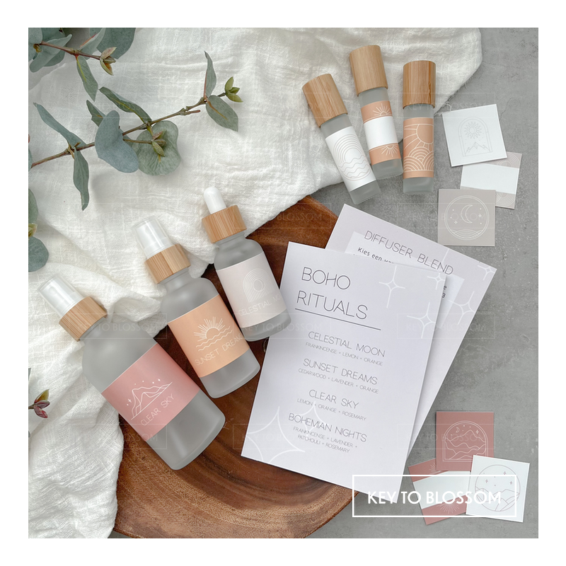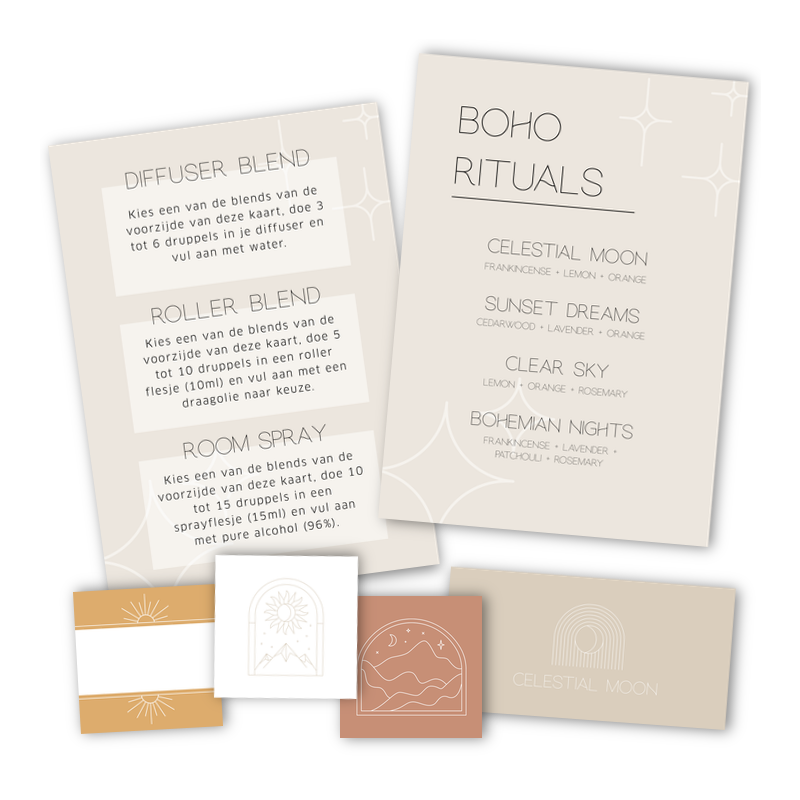 Op de receptenkaart vind je vier verschillende recepten en een uitleg hoe je deze kunt kunt toepassen als diffuser blend, roller blend en/of room spray. Maak je flesje helemaal af met de bijpassende stickers.