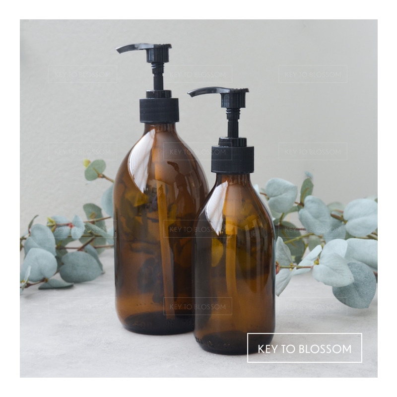 - Je ontvangt een glazen pomp fles (250 ml) en een zwarte pomp top.