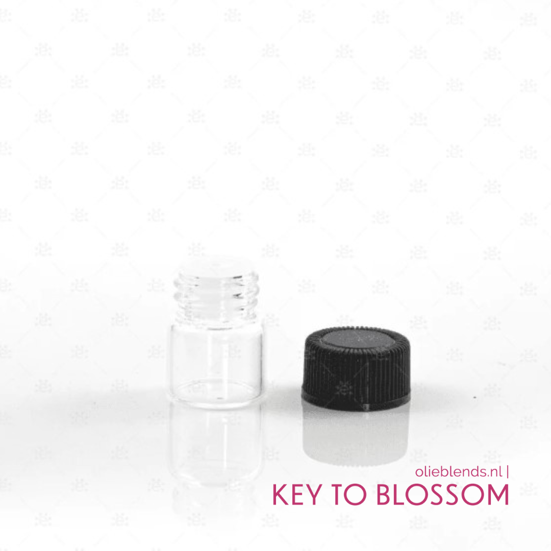 - Je ontvangt de gewenste aantal glazen sample flesjes (1 ml) inclusief plastic druppelaar en dop.