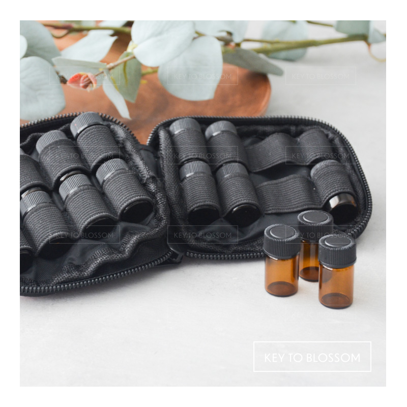 Aan de binnenzijde zitten elastieken banden voor in totaal 16 plekken/vakjes voor je samples. Er passen samples in van 1ml en 2ml. Je kunt gaan voor de standaard samples, maar ook de 2ml rollerflesjes zijn super handig voor onderweg.