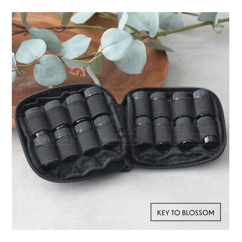 - Deze etui kan los worden besteld, of gevuld met 2 sprayflesjes, 3 rollerflesjes, 9 sampleflesjes, brochure en capstickers.