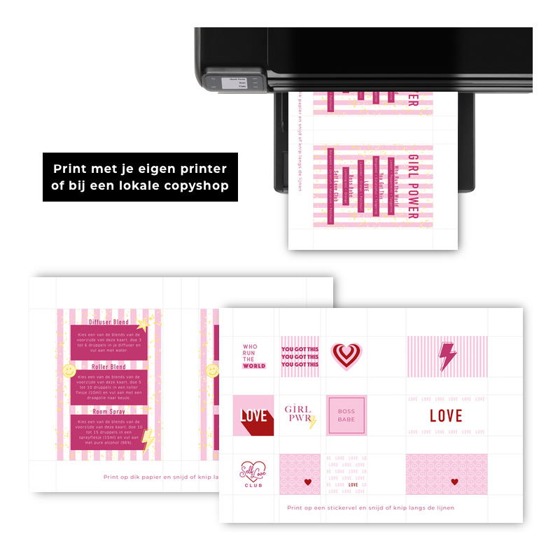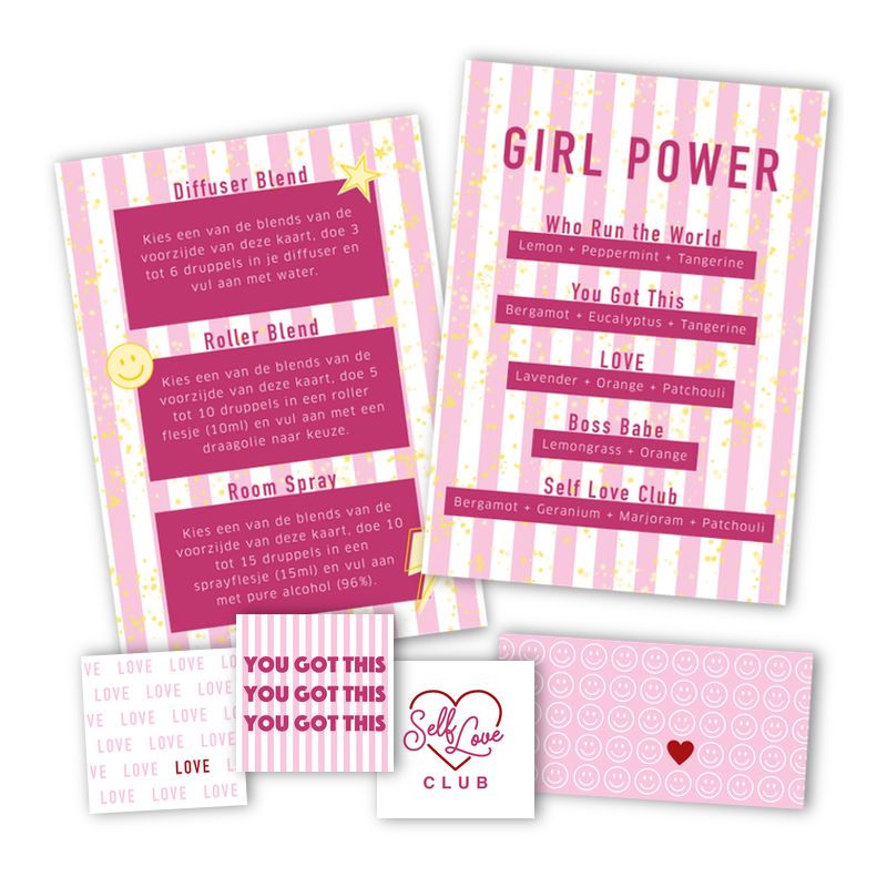 Auf der Rezeptkarte finden Sie fünf verschiedene Rezepte und eine Beschreibung, wie Sie sie als Diffusormischung, Roll-On Mischung und/oder Room Spray verwenden können. Vervollständigen Sie Ihre Flasche mit den passenden Aufklebern.
