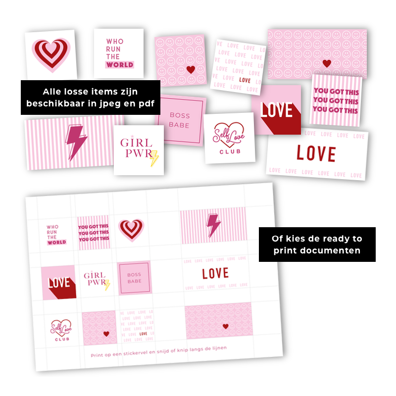 NEU! Bei den digitalen Dateien finden Sie auch Dokumente (templates) für Canva. Hier können Sie ganz einfach Ihren eigenen Aufkleberbogen zusammenstellen und eventuell Ihr eigenes Logo hinzufügen, für eine noch persönlichere Note!