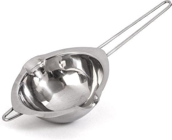 Schmelzpfannen zum Schmelzen Ihrer Rohstoffe zum Beispiel zum Selbermachen. Stellen Sie diese Pfanne in eine Pfanne mit heißem (nicht kochendem!) Wasser und schmelzen Sie Ihre Rohstoffe. Praktisch zum Beispiel zum Schmelzen von Wachs für Kerzen, aber auch Kokosöl, Sheabutter usw. zum Abfüllen eines Lippenbalsams oder von Dosen.